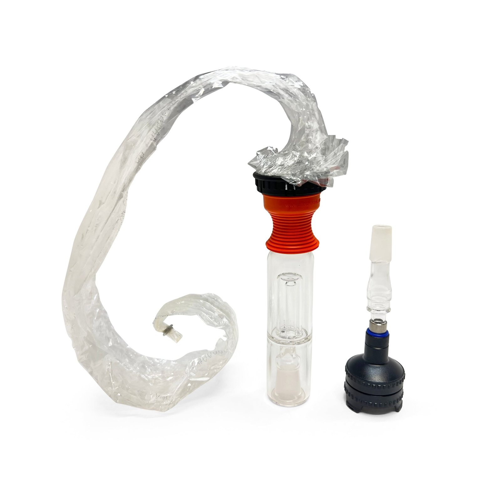 Once you have the WPA fitted to the filling chamber of your Volcano, simply attach the bubbler to the WPA, and then insert your balloon onto the other end.